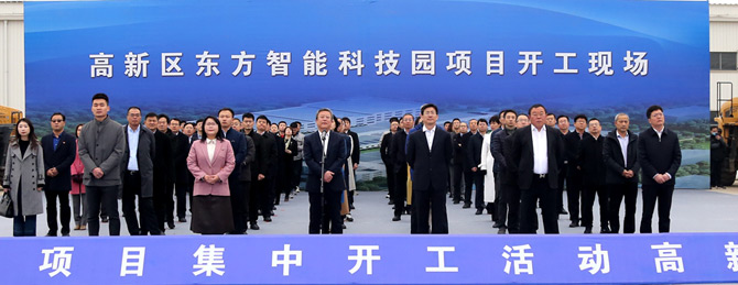 3月13日上午,烟台市举办2021年全市114个重大项目集中开工仪式,拉开了烟台万亿投资的序幕。活动采用视频连线的形式,分为1个主会场,12个分会场。其中高新区分会场设在公司云联商城智能科技园现场,这标志着东方智能科技园区正式开工建设。